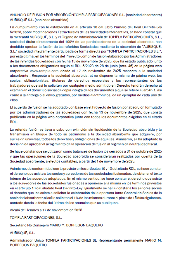 TOMPLA dispone de un sistema de gestión de la calidad certificado por AENOR .